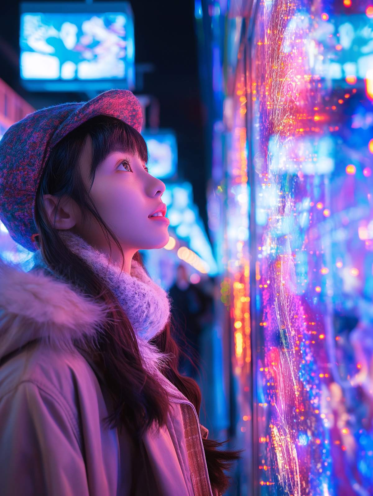 在東京街頭旅拍,則可以嘗試更時尚的妝容。金屬光澤眼影或亮色唇彩,搭配比較閃亮的 Luquage 系列鏡片,能讓整體造型更具潮流感。拍照時可利用霓虹燈或商店櫥窗的反射,營造都市女性的自信氛圍。